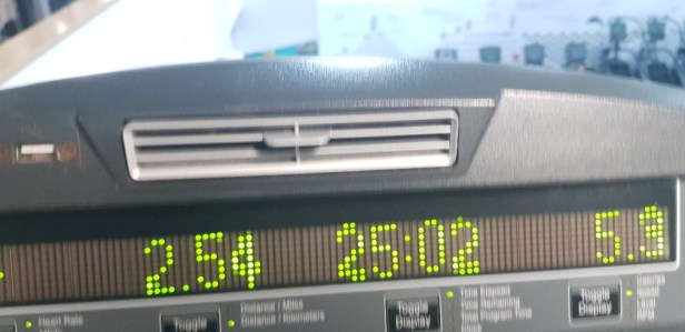 Friday – no run, but 25 minutes on the cross-trainer at the gym, followed by leg work and core strength exercises.