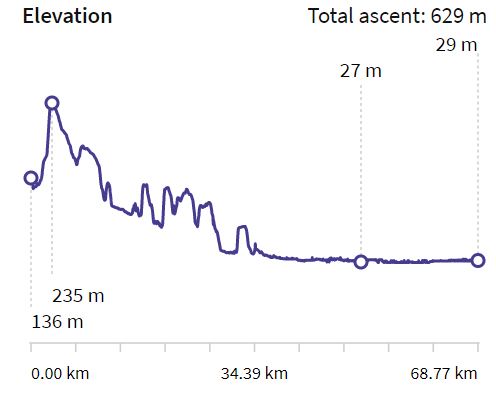 The first half, roughly, of this race is predominantly on trails in woods or across farm land, with the second half on canal towpath with reasonably good surface throughout. It was a bit of a dilemma from a shoe perspective. Ideally I would have worn more robust trail shoes to better handle the mud, then change to road shoes once the going got good. Some people did do this, I gather, but it wasn’t worth the crew hassle for me and I certainly didn’t want to carry shoes all day. In the end I wore Inov8 Trailfly G300 as a compromise. They have 4mm lugs, so weren’t a lot of help in the mud but probably better than skating around in road shoes, and were fairly comfortable to run in on the towpath.
