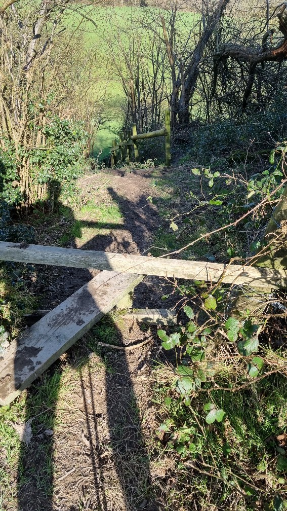 Stepping over stiles became an oft-repeated chore, there seemed to be a lot of them, many like this one at the top of steep hills.