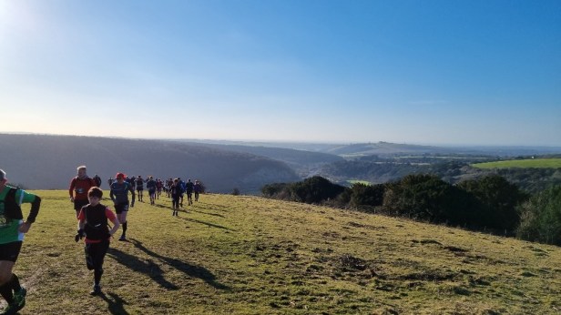 The logistics were straightforward, just an hour’s drive from home. I had a slightly early start and headed down on the morning. I was in plenty of time to register, visit the lavs and warm up. It was already a beautiful morning and the forecast was excellent, I was looking forward to getting going. I had dithered a bit about what to wear – just a long-sleeved base layer, or a t-shirt and top, opting for the latter in the end. I was a bit warm from time to time, but was glad of the extra layer when exposed to a stiff breeze up on the downs.