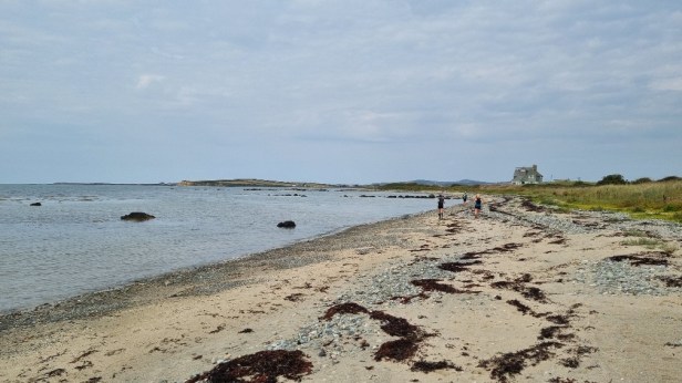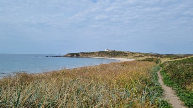 On I plodded, actually grateful to get to the middle section which was very reminiscent of the South West Coast Path, parts of which I’d had the opportunity to run a few weeks before while glamping in North Devon. I really enjoyed this part of the race, the scenery was fantastic, and although there were ups and downs into coves, for the most part they weren’t severe and pretty runnable for the most part. There was the occasional beach to negotiate, some sandy, some pebbly. With my enormous size 14 clown feet I found I could run fairly well on the pebbles, skating across the top where others were struggling to walk. I picked up several places doing this.