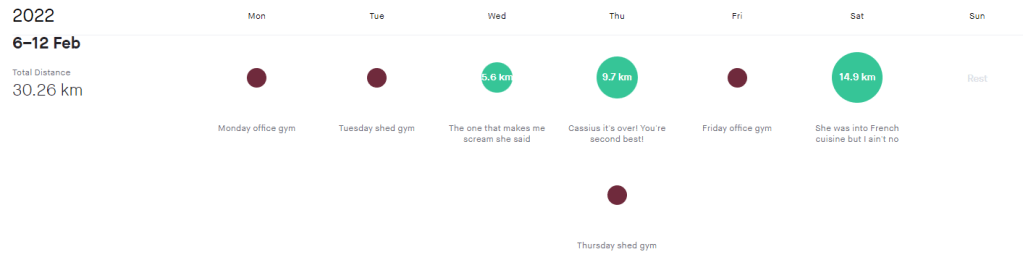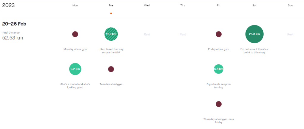 The volume increases next month, with a few big days out at the weekends and at least one substantial back to back. All of a sudden, there’s only about 9 weeks left till the first 100. Gulp.