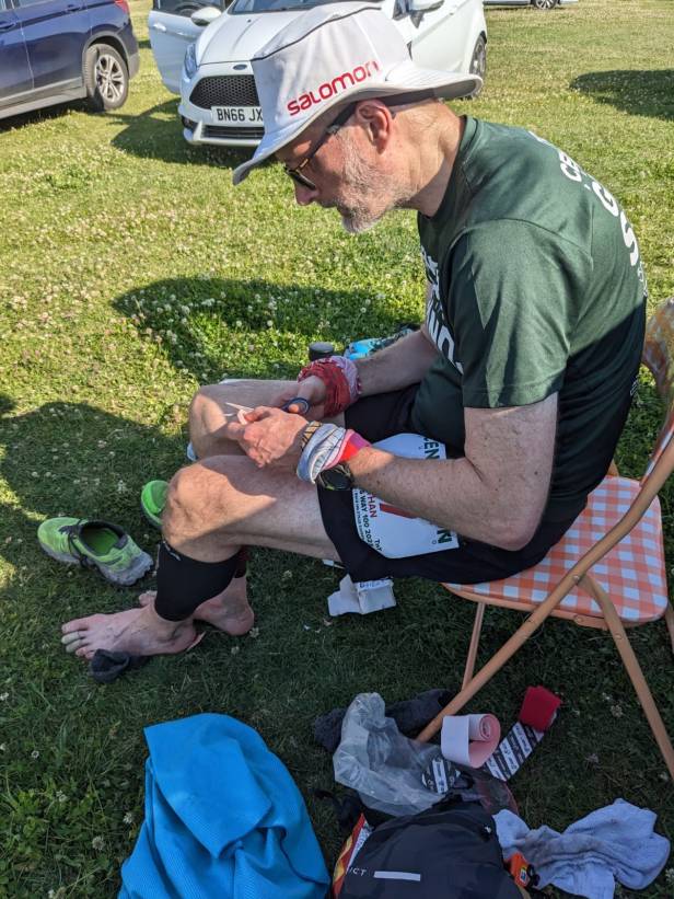 Being adequately hydrated also makes it much easier to eat. In addition to a steady supply of Tailwind, I ate a tonne of food. There was a period where I didn’t fancy much of what I had on me – it was too hot for sandwiches and crisps, but fortunately both Centurion and Louise had laid on a lot of fruit which was just the job – tasty, refreshing and easy calories. After my positive cup-a-soup experience on TP100, I had three of them on this race. They’re easy to take on, tasty and quite salty too. At Southease (84 miles) I had the munchies big time, my stomach was rumbling loudly. I polished off two rounds of excellent jam sandwiches here, really stuffing my face, and felt a lot better for it. Overall I think I stayed on top of fuelling – again probably helped by expending less energy than I normally would.